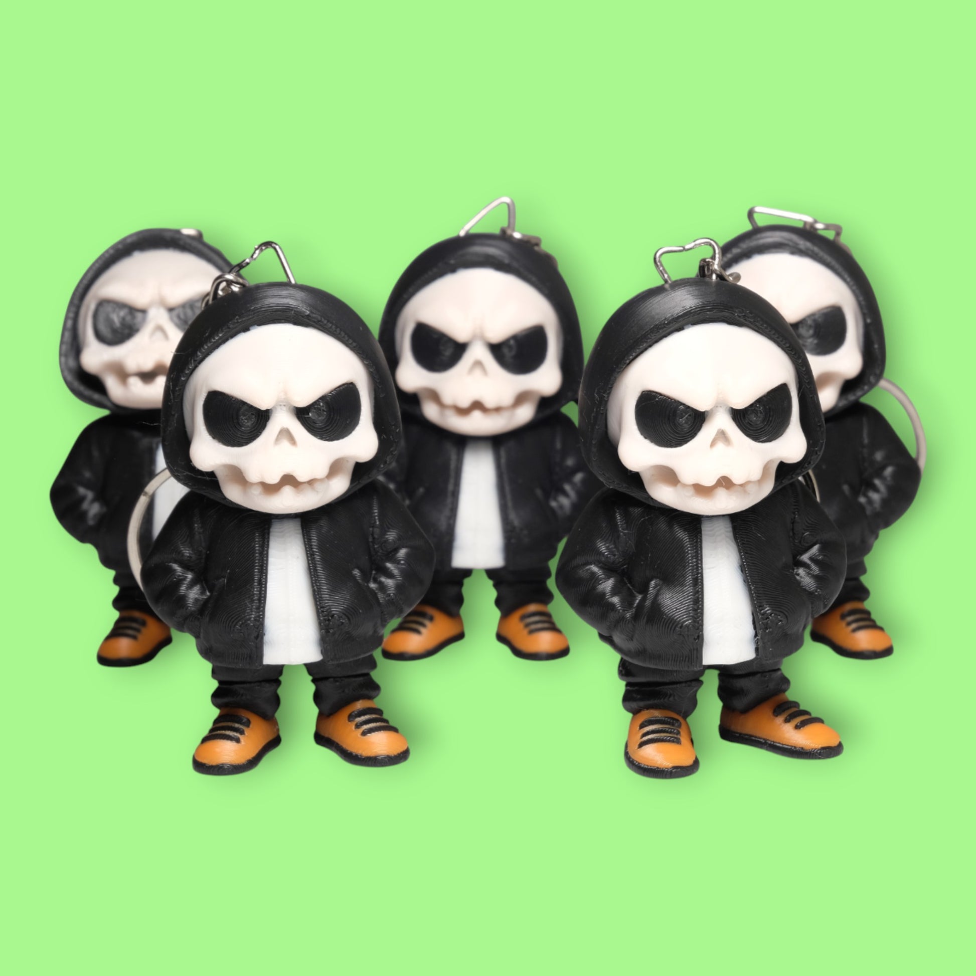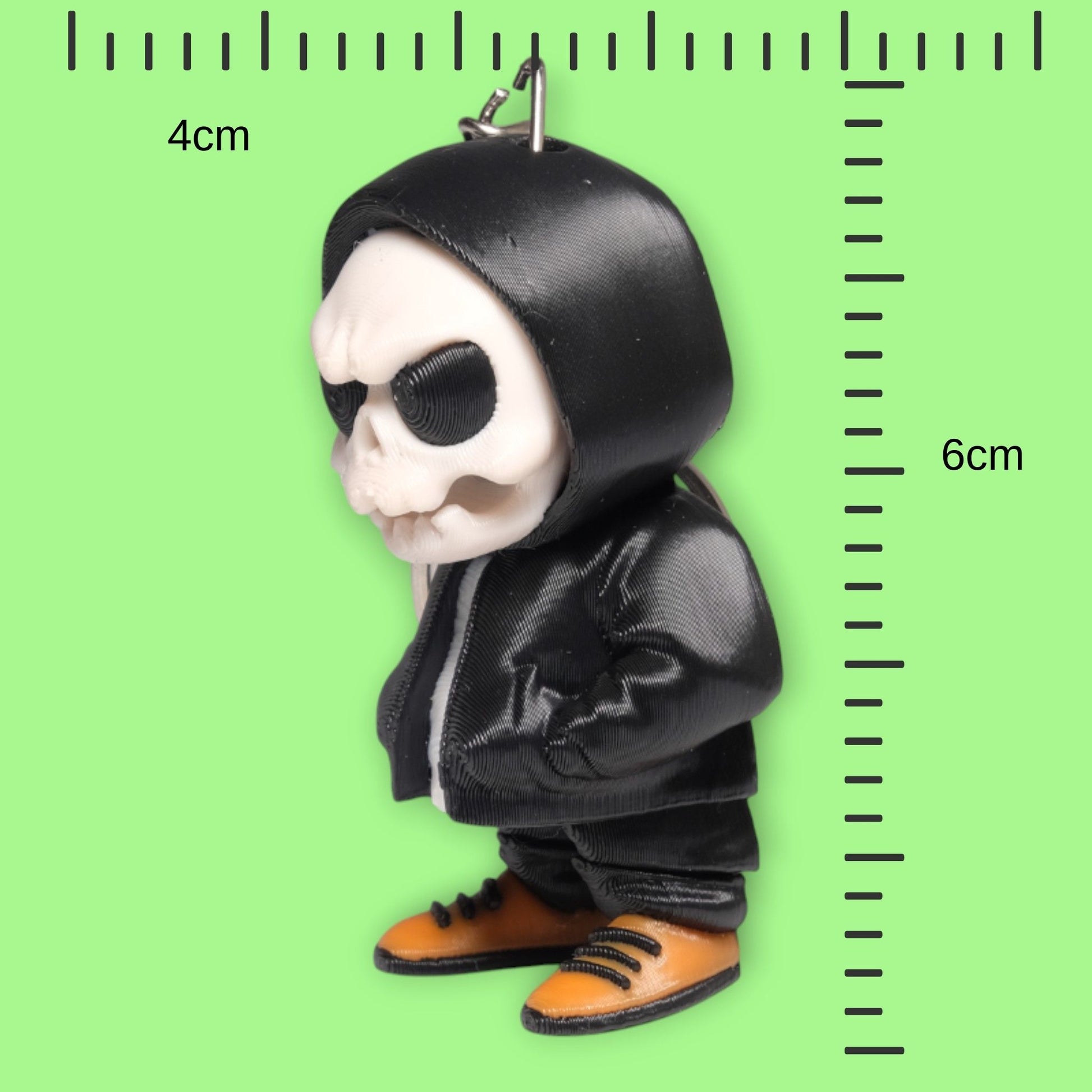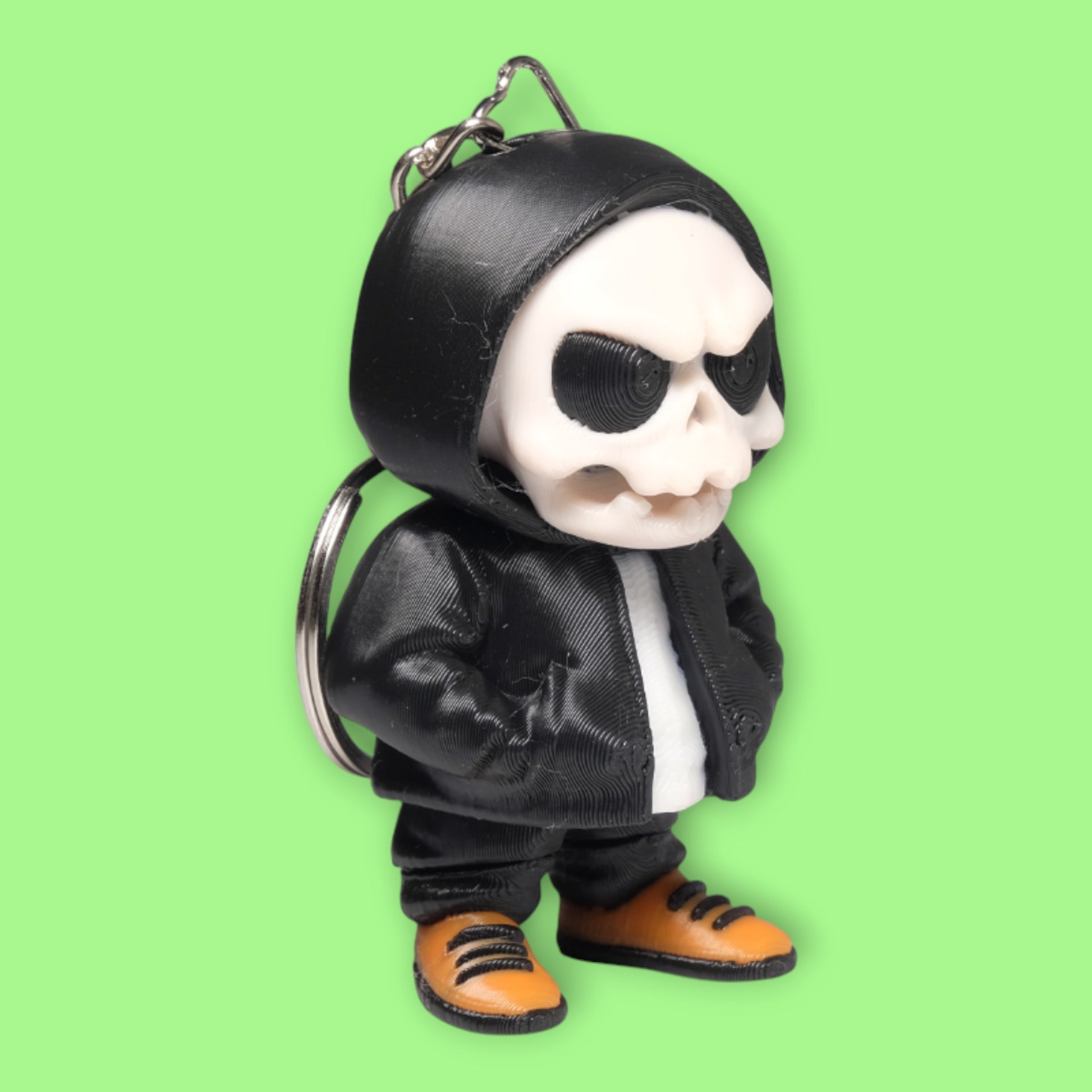 - 3D Baskı Dokusu: Kuru kafa kemik yapısı ve kapüşonun kıvrımları, yüksek kaliteli 3D baskı ile detaylandırılmıştır.