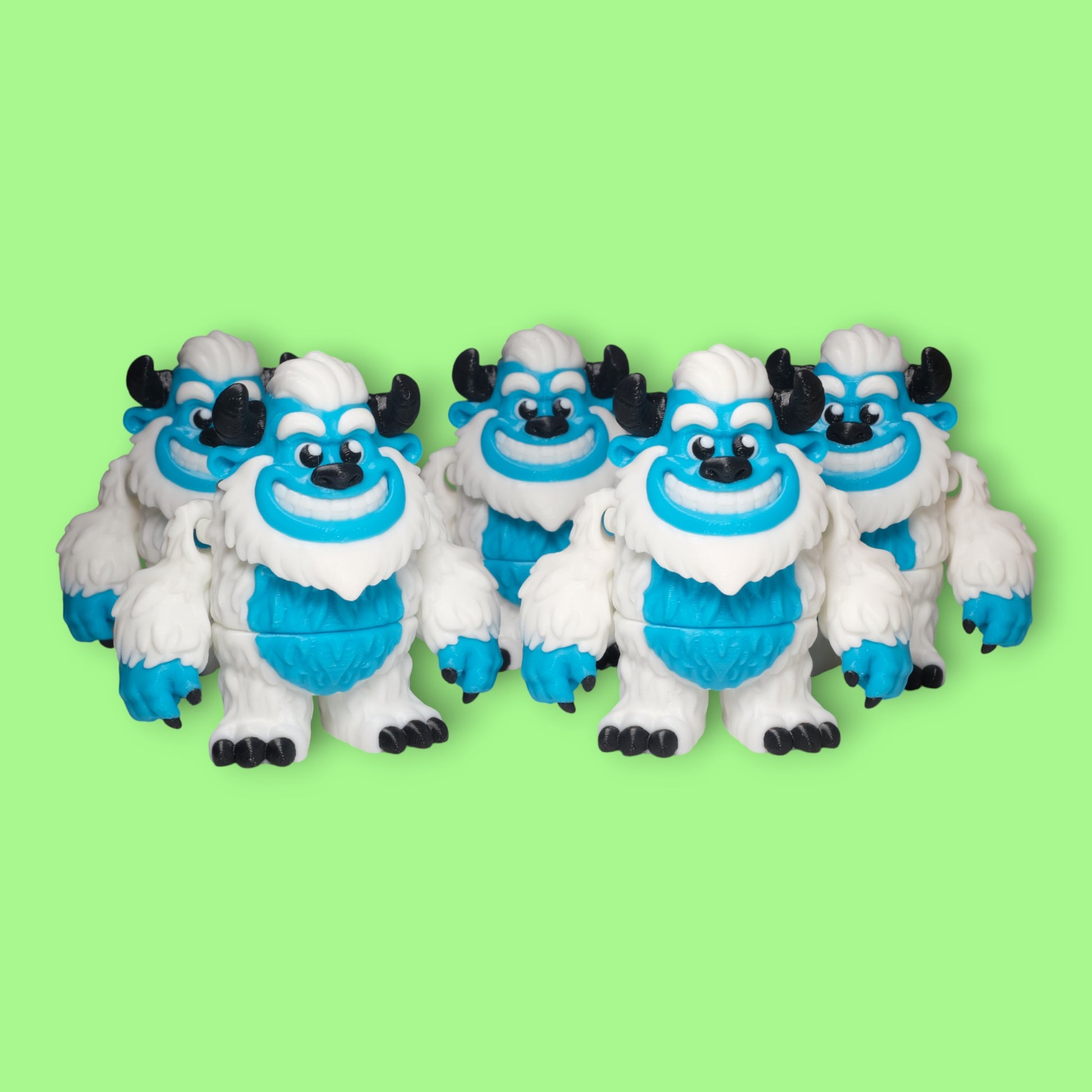- Eğlenceli Canavar Tasarımı: Geniş gülümsemesi, siyah boynuzları ve pofuduk beyaz kürk dokusuyla tasarlanmış sevimli Yeti (Abominable Snowman) figürü.